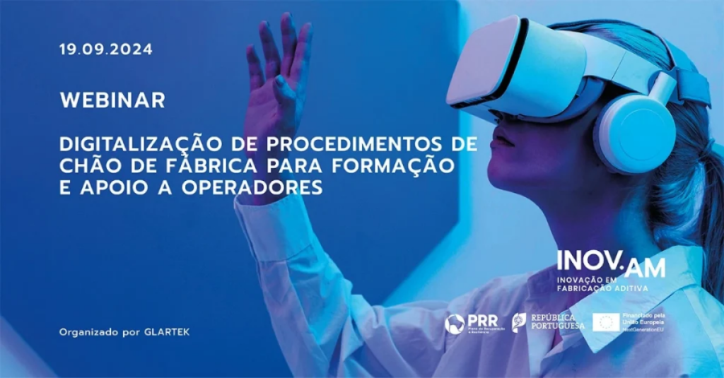 A Glartek tem desenvolvido funcionalidades avançadas de visualização e interação 3D através de realidade aumentada e inteligência artificial, além de módulos de gestão de competências e treino dos operadores. Neste webinar, que juntou mais de 40 participantes do consórcio INOV.AM, foram apresentadas duas inovações: os Laboratórios Virtuais de Treino, destinados à formação dos operadores/colaboradores, dispensando o uso de máquinas reais ou a presença física no chão de fábrica; e a Plataforma de Gestão de Competências, que facilita a identificação das necessidades de formação e a melhoria contínua das competências dos trabalhadores.